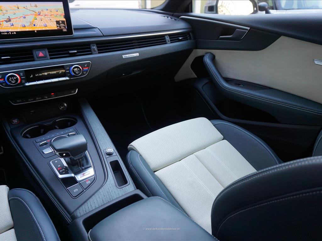 Fraaie Audi S5 Sportback 3.0 TFSI Quattro | Audi Exclusive uitgevoerd (door koper naar wens samengesteld, dus unieke specs) | Panoramadak | Bang & Olufsen Premium Audio | Adaptieve cruise control | Lane departure met stuurcorrectie | Dodehoek detectie | Sfeerverlichting | Stoelverwarming 4x + stoelventilatie + memory pakket | Prachtig Audi Exclusive interieur, zwart gecombineerd met licht creme en afgezet met donker eikenhout | 360 (TopView) camera | Head Up Display | Matrix LED | Keyless | 19inch Audi sportvelgen | Rode remklauwen | Privacy glass achterpassagiers | Alu design spiegelkappen | Chrome line exterieur accenten | Alarmsysteem | Optioneel 1 jaar garantie € 2.999,- | achterbank in delen neerklapbaar, achterspoiler, airco separaat achter, alarm klasse 3, aluminium delen exterieur, aluminium interieur afwerking, Anti Blokkeer Systeem, armsteun voor, audio installatie, Autonomous Emergency Braking, bandenspanningscontrolesysteem, bestuurdersairbag, Bluetooth, boordcomputer, Brake Assist System, buitenspiegels elektrisch verstel- en verwarmbaar, centrale vergrendeling met afstandsbediening, connected services, cruise control, dimlichten automatisch, electronic climate control, elektrisch bedienbare achterklep, elektrische ramen achter, elektrische ramen voor, Elektronisch Sper Differentieel, Elektronisch Stabiliteits Programma, elektronische remkrachtverdeling, hill hold functie, hoofd airbag(s) achter, hoofd airbag(s) voor, kunstlederen/microvezel bekleding, LED achterlichten, LED dagrijverlichting, LED koplampen, lendesteun(en) verstelbaar, multimedia-voorbereiding, navigatiesysteem full map + hard disk, passagiersairbag, regensensor, ruitensproeiers/wisserbladen verwarmbaar, schakelpaddles, sportonderstel, sportstoelen, sportstuur, spraakbediening, start/stop systeem, stuur leder, stuur multifunctioneel, stuur verstelbaar, vervolgbotsing preventie, volledig digitaal instrumentenpaneel, voorstoel(en) elektrisch verstelbaar, voorstoelen verwarmd, warmtewerend glas, WiFi, zij airbag(s) voor, achterstoelen verwarmd, audio installatie premium, buitenspiegels elektr. met geheugen, buitenspiegels elektrisch inklapbaar, DAB, elektrisch glazen panorama-dak, elektrisch verstelb. bestuurdersstoel met geheugen, extra getint glas achter, gelimiteerd slipdifferentieel, head-up display, houtafwerking interieur, koplampreiniging, lichtmetalen velgen 19inch, luxe lederen bekleding, matrix LED koplampen, premium kleur, rijstrooksensor met correctie, smartphone integratie, stoel ventilatie voor, variabele stuuroverbrenging, verwarmde voorruit, bots waarschuwing systeem, cruise control adaptief met Stop&Go, dodehoek detectie, file assistent, rijstrooksensor met correctie, verkeersbord detectie, achteruitrij assistent, achteruitrijcamera, dodehoek detectie, parkeer assistent parkeersensor voor, rondomzicht camera.
