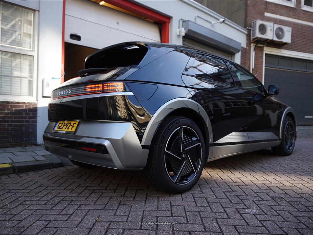 Hyundai IONIQ 5 84 kWh Lounge | BTW incl. | Nieuwprijs ca € 57.200,- | Fabrieksgarantie 12/2029 | Accugarantie 12/2032 of 160.000km | Vollederen interieur | Electrisch bedienbare stoelen met geheugen, stoelverwarming en stoelventilatie | Verwarmd stuurwiel | Head Up Display | Adaptieve cruise control + Lane departure met stuurcorrectie | Sfeerverlichting | APPLE Carplay/ Android Auto | Premium audio met DAB | 360 (TOPVIEW) camera | Virtual cockpit | achterbank elektrisch neerklapbaar, achterbank in delen neerklapbaar, achterruitverwarming, achterstoelen elektrisch verstelbaar, achterstoelen verwarmd, achteruitrij assistent, adaptief demping systeem, airco automatisch, alarm klasse 1(startblokkering), Anti Blokkeer Systeem, Apple Carplay/Android Auto, armsteun voor, audio installatie premium, automatische snelheidsbegrenzing ISA, autonome parkeerfunctie, Autonomous Emergency Braking, bagagedek, bagage-scheidingsnet, bandenspanningscontrolesysteem, bestuurdersairbag, binnenspiegel automatisch dimmend, Bluetooth, bots waarschuwing systeem, buitenspiegels elektrisch inklapbaar, buitenspiegels elektrisch verstel- en verwarmbaar, buitenspiegels in andere kleur, connected services, cruise control adaptief met Stop&Go en stuurhulp, DAB, dakspoiler, dimlichten automatisch, dodehoekdetectie met correctie, draadloze telefoonlader, elektrisch bedienbare achterklep, elektrisch verstelb. bestuurdersstoel met geheugen, elektrisch verstelb. passagiersstoel met geheugen, elektrische ramen voor en achter, Elektronisch Stabiliteits Programma, extra getint glas achter, geluidsisolerend glas, grootlichtassistent, head-up display, hill hold functie, hoofd airbag(s) achter, hoofd airbag(s) voor, interieur voorverwarming/(koeling), keyless entry, keyless start, kruisend verkeer detectie, LED achterlichten, LED dagrijverlichting, LED koplampen, lederen bekleding, lendesteun(en) elektrisch verstelbaar, lichtmetalen velgen 20inch, metaalkleur, motorgeluid simulator, multimedia scherm standaard, multimedia-voorbereiding, navigatiesysteem full map, oplaadmogelijkheid, parkeersensor achter, parkeersensor voor, passagiersairbag, regensensor, rijstrooksensor met correctie, rondomzicht camera, schakelpaddles, spraakbediening, stuur leder, stuur multifunctioneel, stuur verstelbaar, stuur verwarmd, stuurbekrachtiging, Vehicle-to-load , verlichte grille/strip, vervolgbotsing preventie, volledig digitaal instrumentenpaneel, voorstoelen in hoogte verstelbaar, voorstoelen verwarmd en geventileerd, warmtepomp, warmtewerende achterruit, warmtewerende voorruit, zelfstandige rijstrookwissel, zij airbag(s) voor, zonnescherm zijruiten.