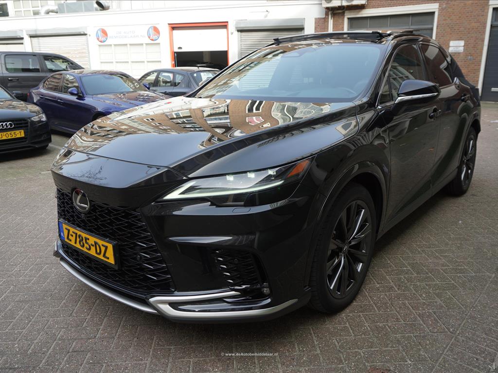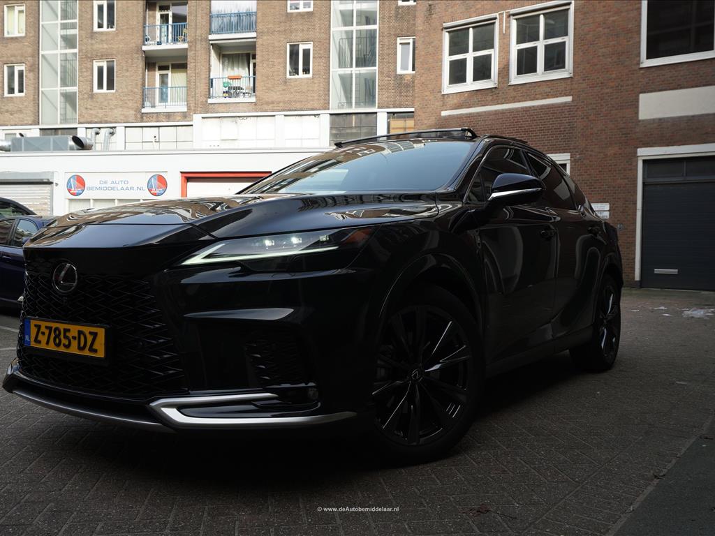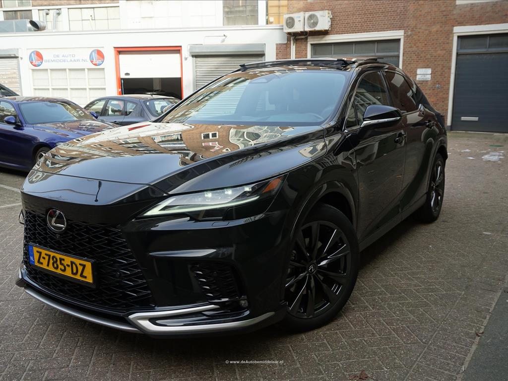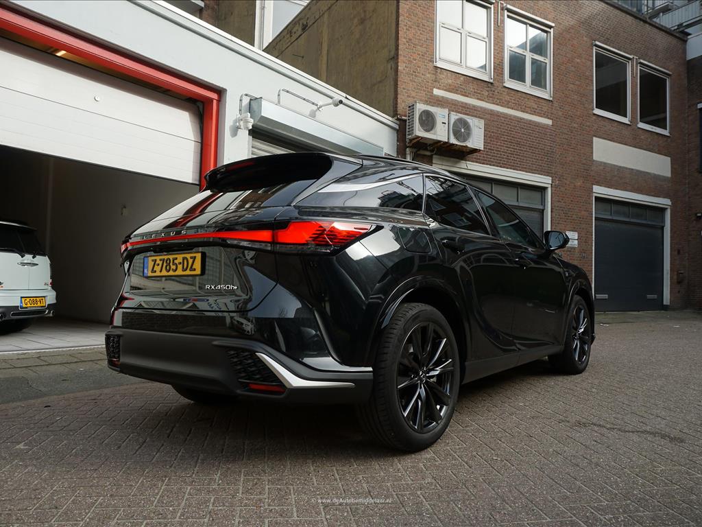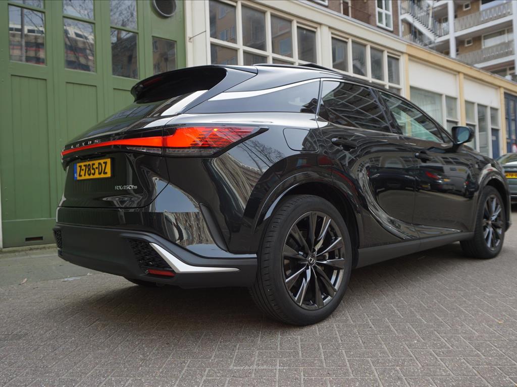 Lexus RX 450h+ F Sport Design | Premium Graphite Black | Panoramadak | Adaptieve cruise control + lane departure + rijstrookwissel hulp | Vollederen interieur | Stoel- en stuurverwarming + stoelventilatie | Premium audio/ Apple Carplay/ Android Auto | Alarm met volgsysteem | Rondomzicht 360 camera | Sfeerverlichting | Eerste eigenaar en dealer onderhouden | Fabrieksgarantie 02/2027 | Garantie hybride batterij en hybride systeem 2/2034 | achterasbesturing, achterbank in delen neerklapbaar, airco separaat achter, alarmsysteem, Anti Blokkeer Systeem, Apple Carplay/Android Auto, armsteun achter, audio installatie premium, autonome parkeerfunctie, bandenspanningscontrolesysteem, bestuurdersairbag, Bluetooth, bots herkenning en activatie, bots waarschuwing systeem, buitenspiegels verwarmbaar, bumpers in carrosseriekleur, camerabeeld in binnenspiegel, centrale airbag voor, connected services, cruise control adaptief met Stop&Go, DAB, dakrails, dodehoek detectie, draadloze telefoonlader, electronic climate control, elektrisch bedienbare achterklep met sensorsturing, elektrisch verstelb. bestuurdersstoel met geheugen, elektrisch verstelbare passagiersstoel, elektrisch verstelbare stoel(en) met geheugen, Elektronisch Stabiliteits Programma, elektronische remkrachtverdeling, geluid- en warmtewerend glas, getint glas en zonwering achter, grootlichtassistent, head-up display, hemelbekleding donker, hoofd airbag(s) achter, hoofd airbag(s) voor, keyless entry/start, knie airbag(s), LED achterlichten, LED dagrijverlichting, LED koplampen adaptief, lederen bekleding, lendesteun(en) verstelbaar, lichtmetalen velgen 21", mistlampen voor, multimedia scherm standaard, navigatiesysteem full map, oplaadmogelijkheid, parkeer assistent, parkeersensor voor en achter, passagiersairbag, regensensor, rijstrooksensor met correctie, schakelpaddles, sfeerverlichting, sportief interieur, spraakbediening, stoel ventilatie voor, stuur leder, stuur multifunctioneel, stuur verwarmd, verkeersbord detectie, vervolgbotsing preventie, volledig digitaal instrumentenpaneel, voorstoel(en) elektrisch verstelbaar, voorstoelen verwarmd, zij airbag(s) achter, zij airbag(s) voor, zonnescherm achterruit, elektrisch glazen panorama-dak, premium metaalkleur.